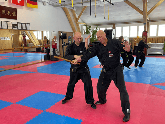 Unter der Leitung von Uwe Johansen (7.Dan) und Andreas Tiefengraber (6.Dan) wurden während sechs Stunden Techniken mit und ohne Waffen vermittelt und gefeilt.