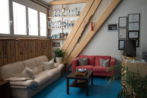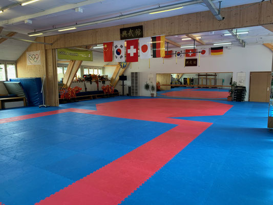 Unsere Halle mit rund 300m2 kann mit einer Schiebewand in zwei kleinere Hallen zu je 150m2 geteilt werden.